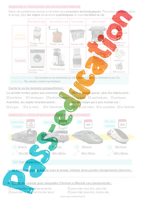 EXERCICE 2 : ÉVOLUTION DE LA VIE QUOTIDIENNE