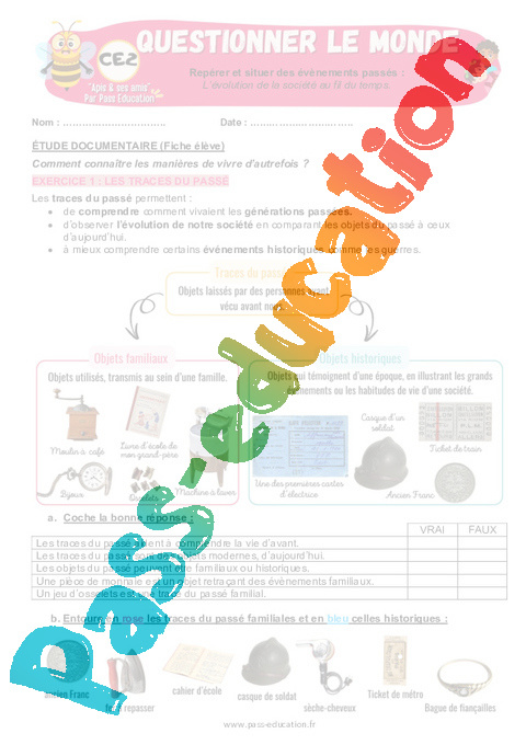 Exercices – L’évolution de la société au fil du temps en Primaire 3 – Apis & ses amis : Questionner le monde.