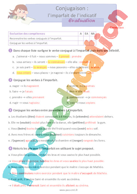 Correction Evaluation : Primaire 4 l’imparfait de l’indicatif pdf