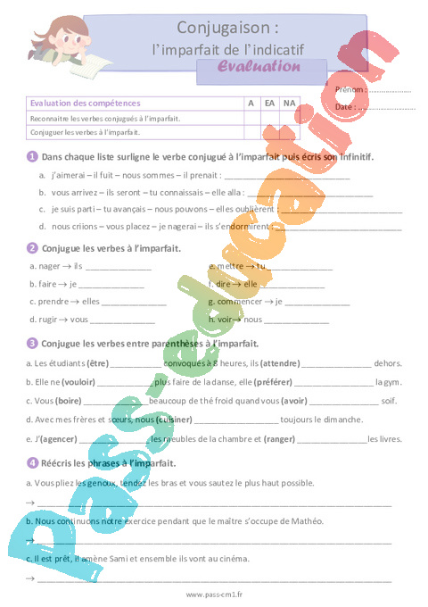 Evaluation : Primaire 4 l’imparfait de l’indicatif pdf