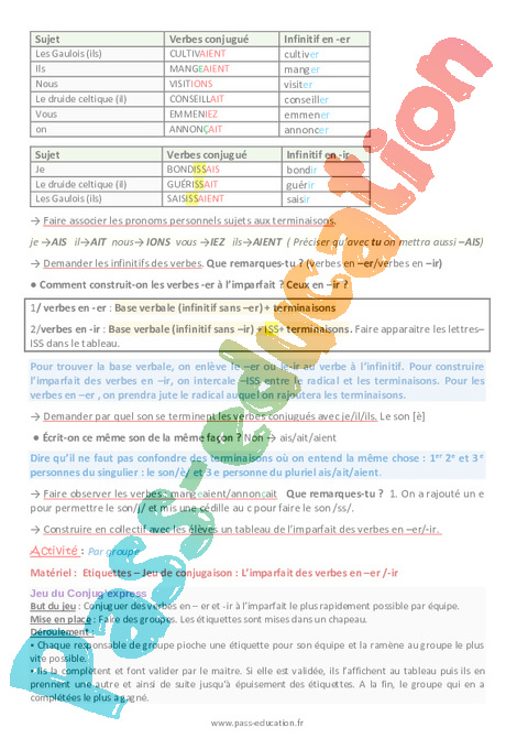 Découverte L’imparfait des verbes en -er-ir en Primaire 3 rtf