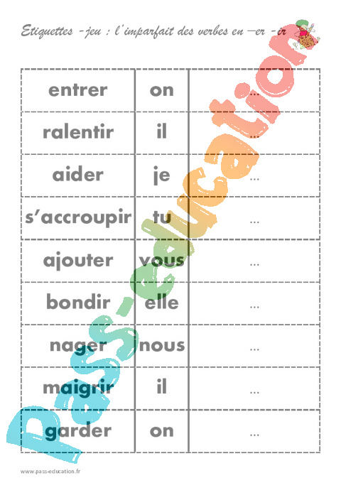 Etiquettes – Jeu de conjugaison L’imparfait des verbes en -er-ir en Primaire 3 rtf