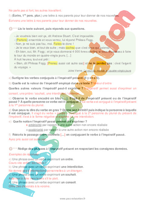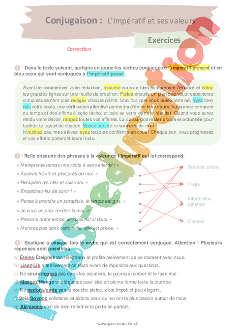 Evaluation avec les corrigés sur L’impératif et ses valeurs : Secondaire 2 .