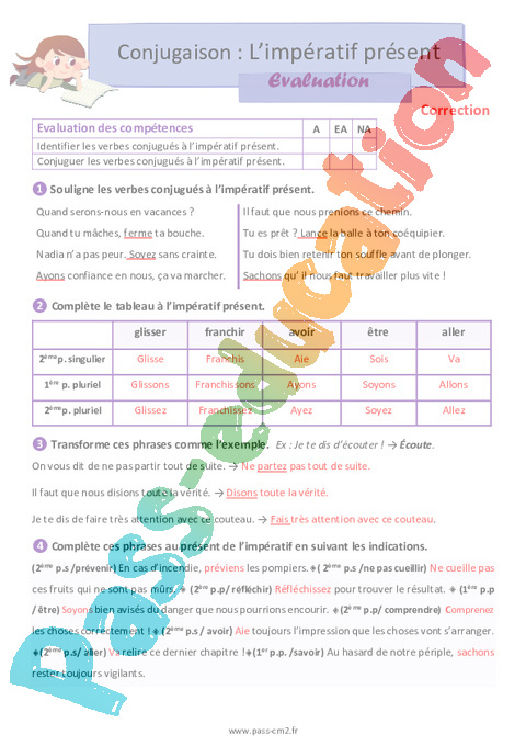 Evaluation avec la correction en Primaire 5 : L’impératif présent.