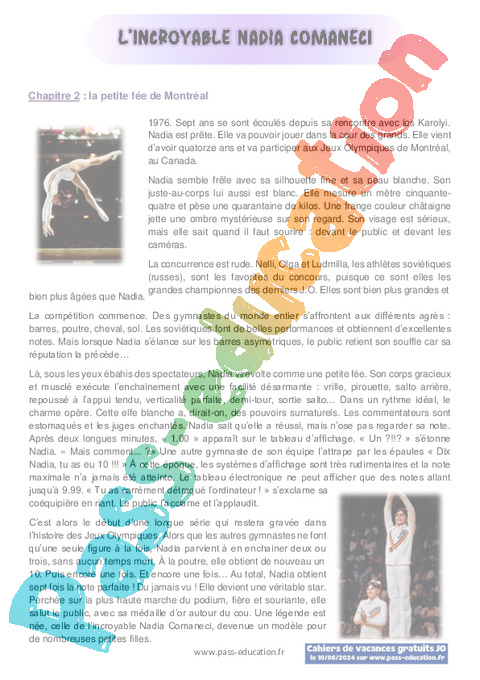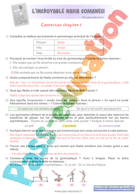 Correction Questionnaire : Primaire 4, 5, 6 Chapitre 1 L’incroyable Nadia Comaneci pdf