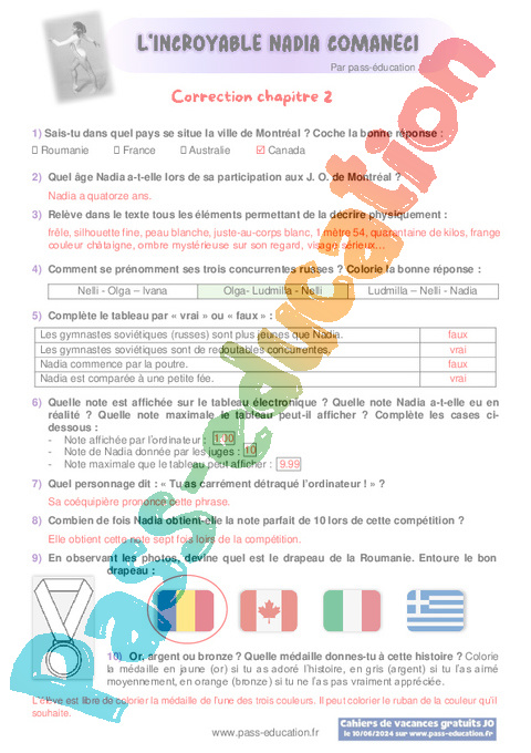 Correction Questionnaire : Primaire 4, 5, 6 Chapitre 2 L’incroyable Nadia Comaneci pdf