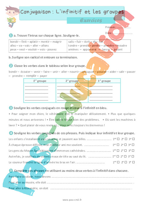 Exercices : Primaire 5 L’infinitif et les groupes pdf