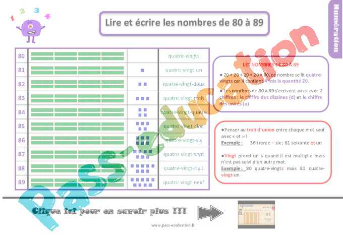 LES NOMBRES DE 80 À 89