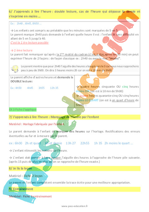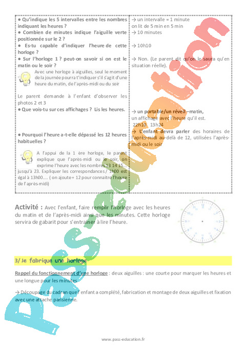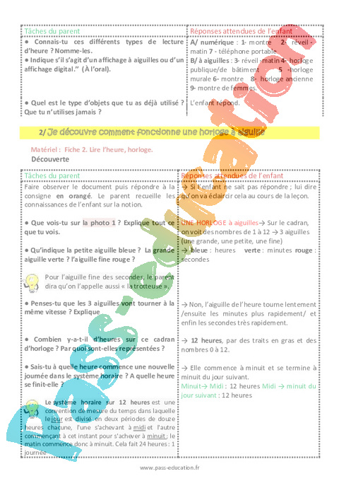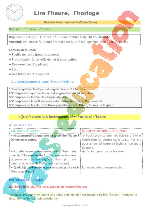 Feuille de route pour les parents-Lire l’heure et l’horloge-CM-Décrochage scolaire pdf