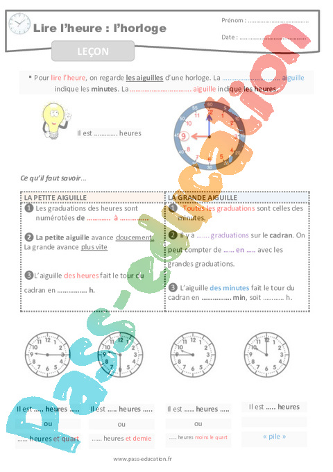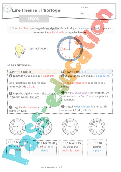 Leçon-Lire l’heure et l’horloge-CM-Décrochage scolaire pdf
