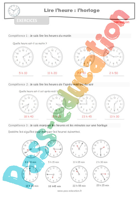 Entrainement-Lire l’heure et l’horloge-CM-Décrochage scolaire-Correction pdf