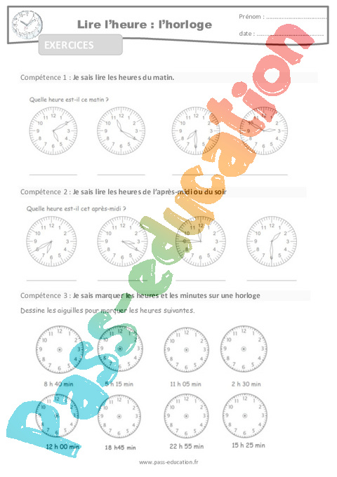 Entrainement-Lire l’heure et l’horloge-CM-Décrochage scolaire pdf