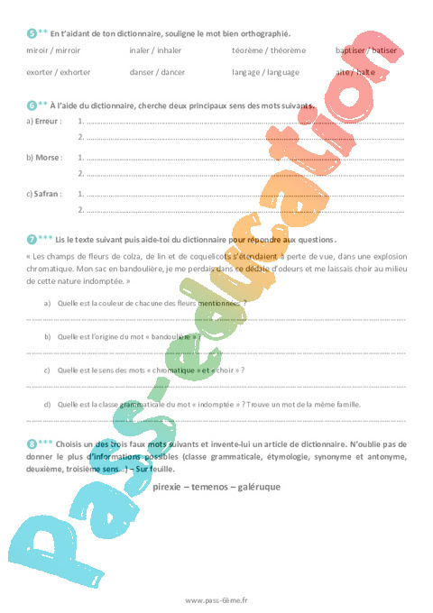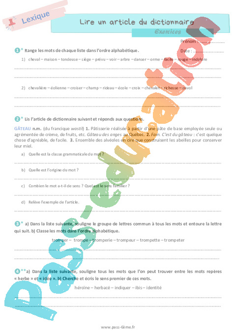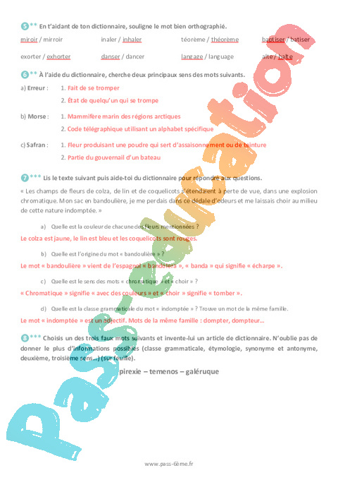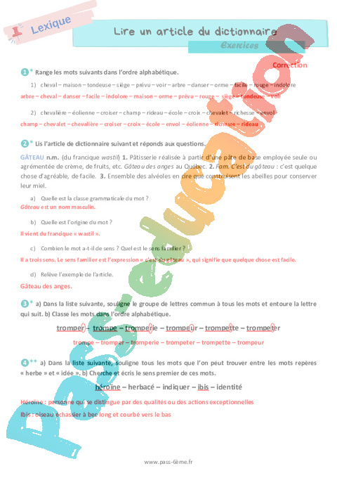Correction Exercices 6ème Lire un article du dictionnaire pdf