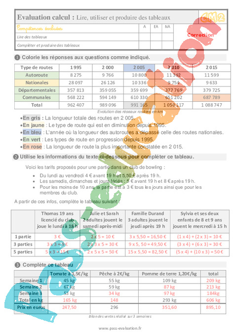 Evaluation Lire, utiliser et produire un tableau en Primaire 5 – Correction pdf