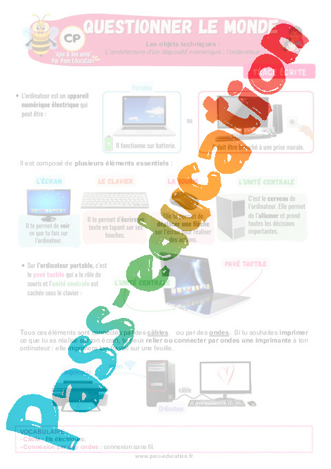 5 Trace écrite : Primaire 1 Architecture d’un dispositif numérique – l’ordinateur pdf