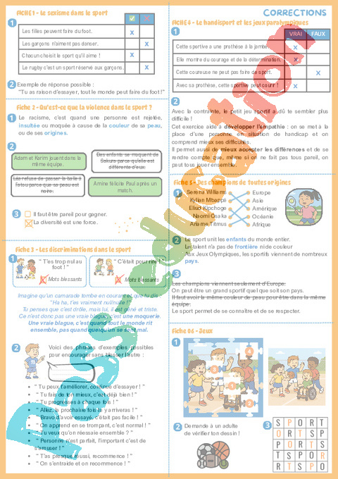 Lutte contre la discrimination et le racisme dans le sport : Primaire 2, 3 – Fichier d’activités EMC pdf