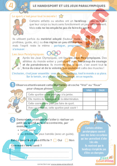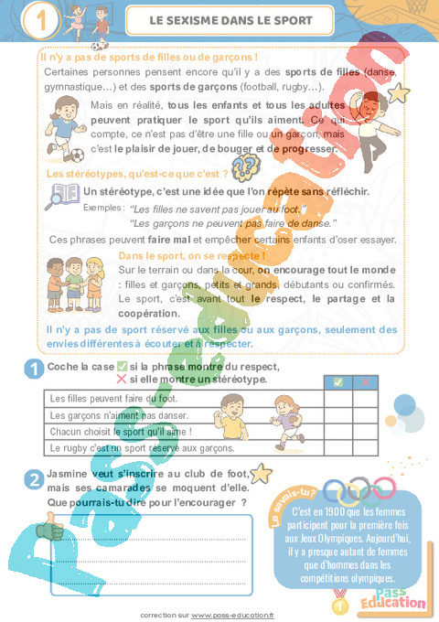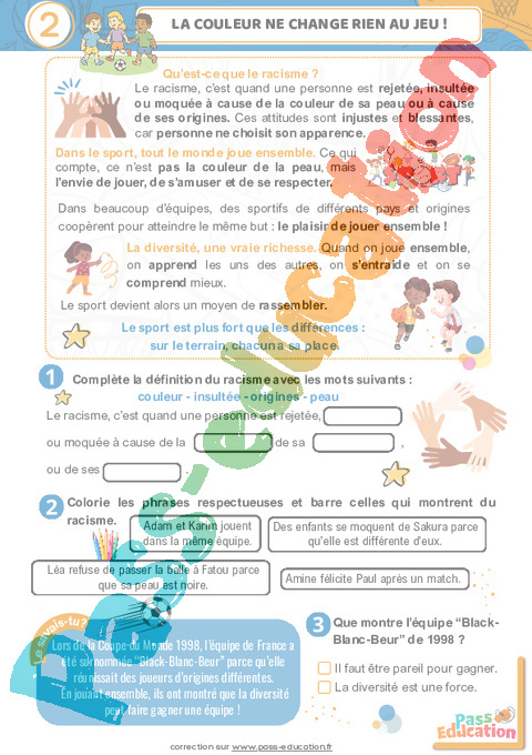 Fichier d’activités à imprimer sur la lutte contre la discrimination et le racisme dans le sport (EMC) pour la Primaire 2, 3 .
