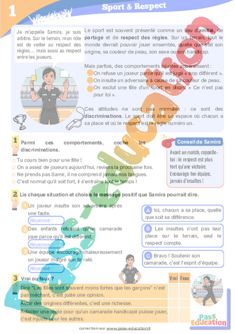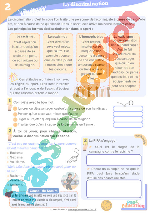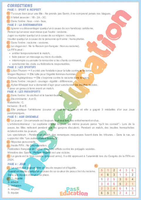 Correction Lutte contre la discrimination et le racisme dans le sport : Primaire 4, 5 pdf