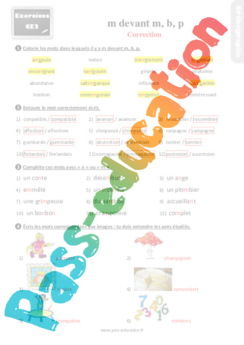 Colorie les mots dans lesquels il y a m devant m, b, p.