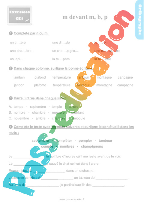Révisions, exercices à imprimer en Primaire 2 sur m devant m, b, p