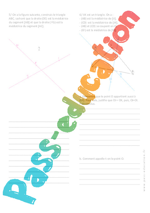 Médiatrice et cercle circonscrit – Triangles – Exercices corrigés : Secondaire 1 – Géométrie rtf
