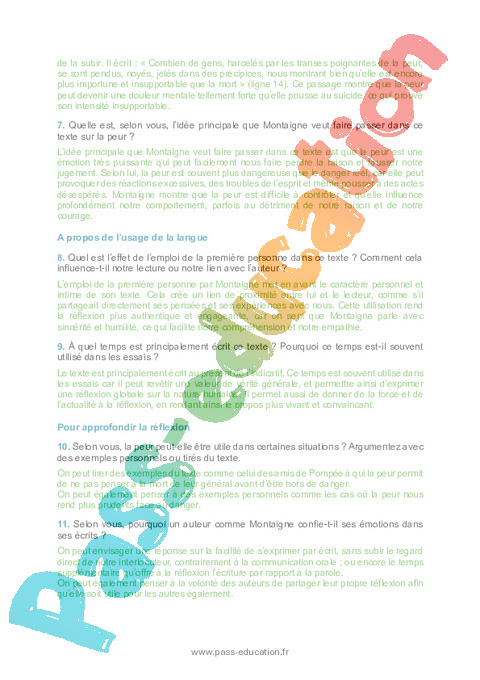 6. Pourquoi Montaigne dit-il que la peur peut être plus insupportable que la mort ? Appuyez-vous sur un passage précis du texte.