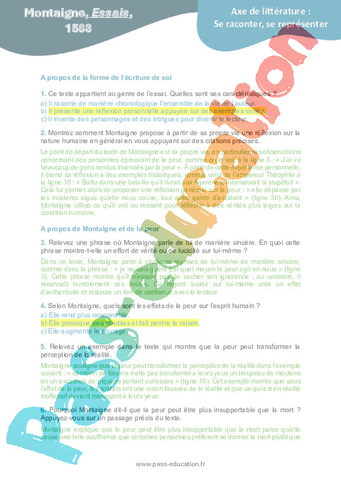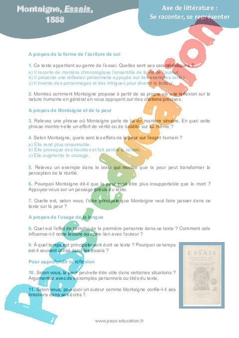 Littérature : Secondaire 3 Montaigne, Essais pdf