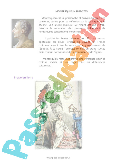 Lecture sur Montesquieu, Les Lettres persanes, 1721 en : Secondaire 3 .