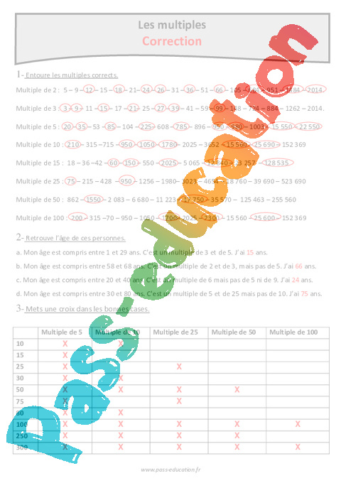 Correction – Multiples : Primaire 4 – Exercices avec correction   pdf