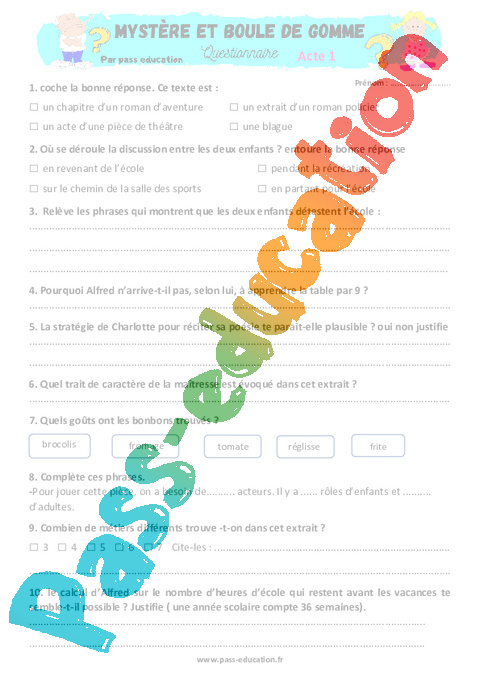 Mystère et boule de gomme acte 1 questionnaire pdf