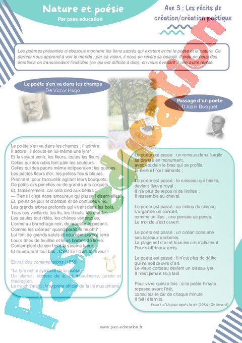 Voici deux poèmes qui parlent des liens entre le poète et la nature. Lis-les en silence, ensuite à haute voix pour mieux saisir la beauté des vers.