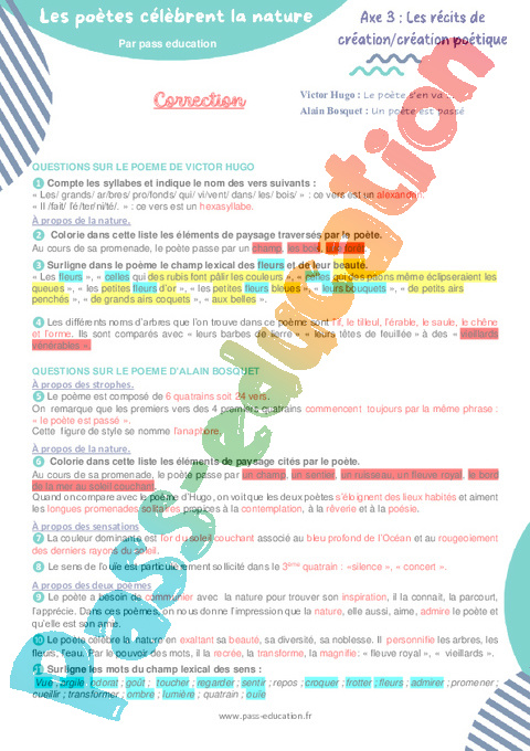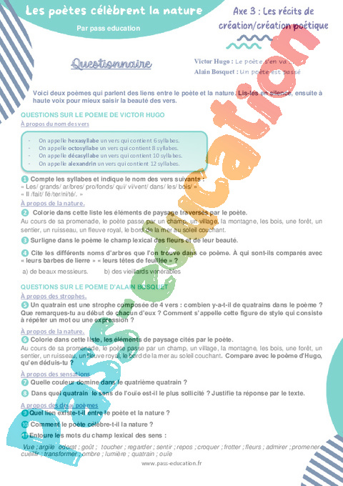Questionnaire Nature et poésie : Primaire 6 pdf