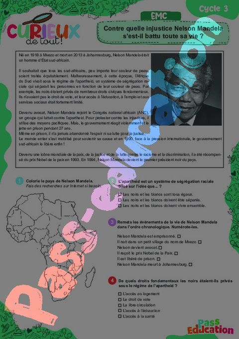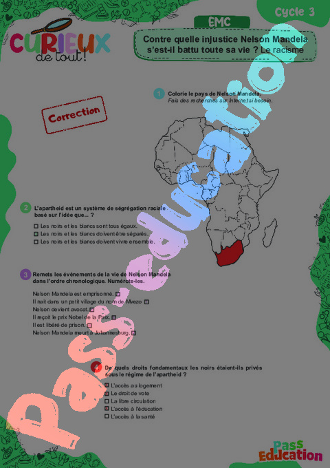 Correction – Nelson Mandela Primaire 4, 5, 6 – Curieux de tout – Journée contre le racisme – 21 Mars pdf