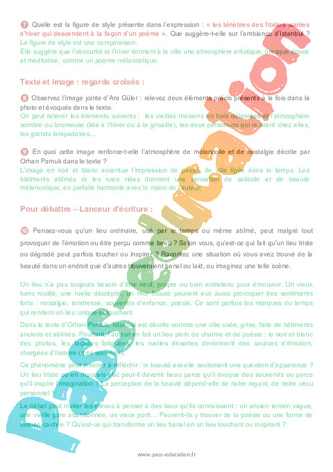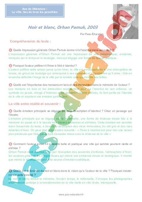Correction Questionnaire Noir et blanc, : Secondaire 2 Orhan Pamuk : Secondaire 2 pdf