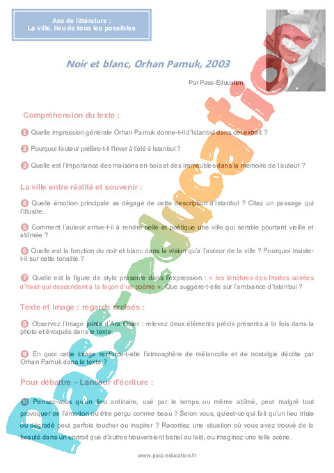 Littérature Noir et blanc, : Secondaire 2 Orhan Pamuk : Secondaire 2 pdf