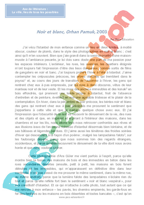 Littérature Noir et blanc, Orhan Pamuk : Secondaire 2 rtf