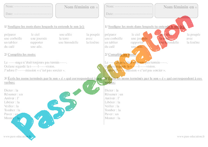 Correction – Nom féminin en e : Primaire 3 – Exercices à imprimer   pdf