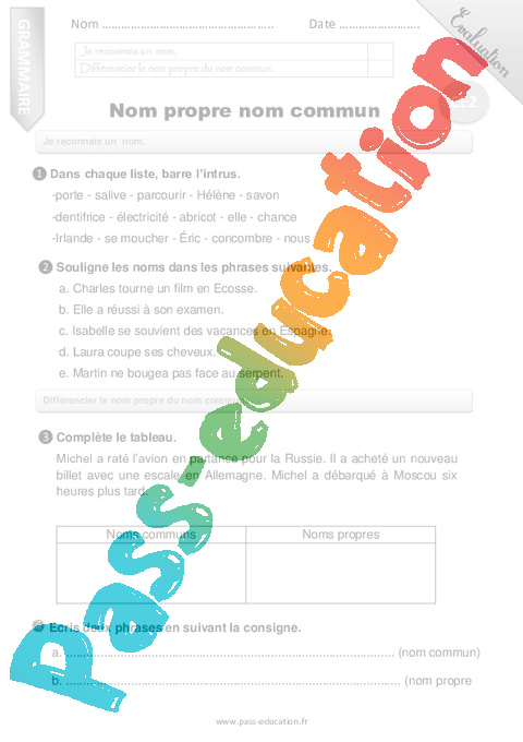 Nom propre-Nom commun-Evaluation-Bilan : Primaire 3 -Correction pdf