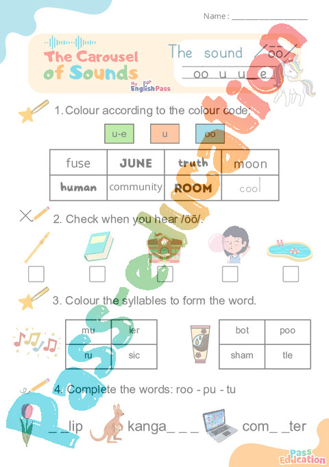 Carousel of Sounds : Maternelle 2 Primaire 1, 2, 3, 4, 5 – Vidéo interactive + Fiche sur le son : /ōō/ oo u u_e.