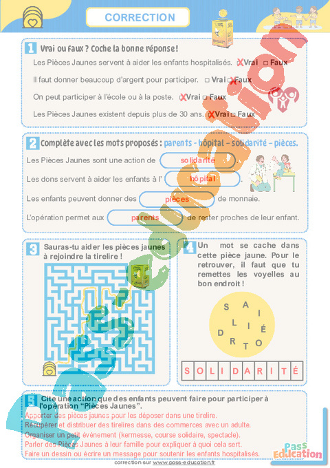 Correction Opération pièces jaunes – Fichier d’activités : Primaire 2, 3 pdf