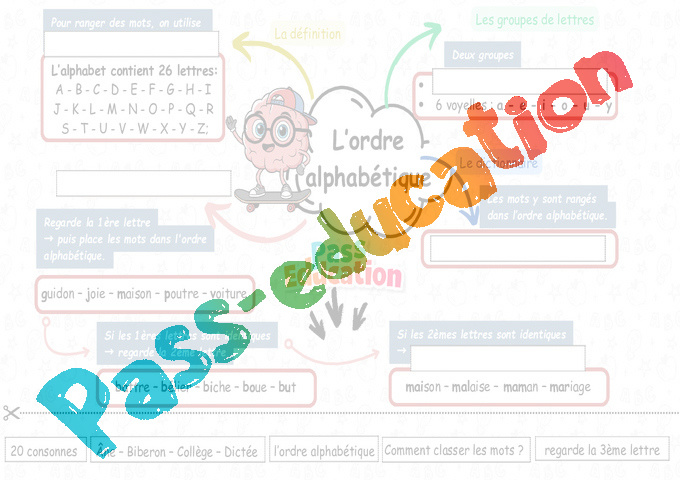 L’ordre alphabétique : Primaire 3 – carte mentale pdf
