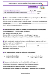 Évaluation avec la correction sur reconnaitre une situation de proportionnalité – 6ème. Evaluation des compétences