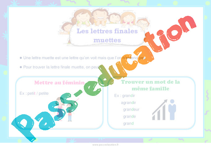 Les lettres finales muettes : Primaire 1, 2 – Affiche Nouveau pdf
