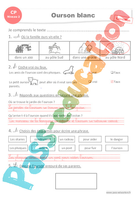 Correction Questionnaire Ourson blanc : Primaire 1 – Luminéo pdf