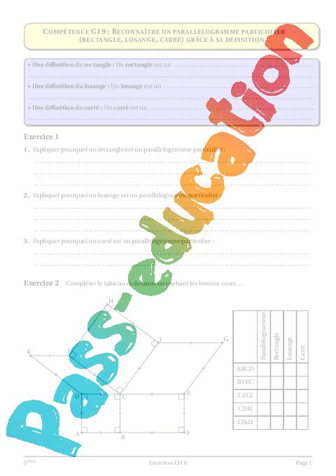 Construire un parallélogramme particulier – Exercices : Secondaire 1 – –