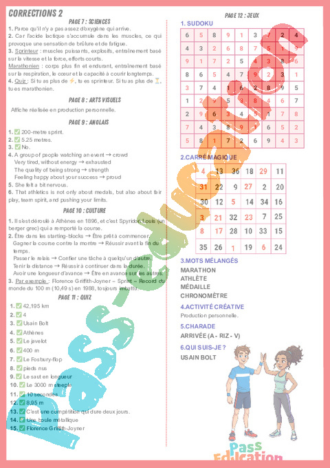 Correction L’athlétisme – Cahier de vacances : Secondaire 1, 2, 3 pdf