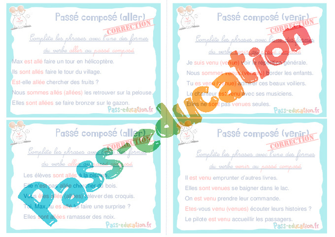 Passé composé (aller et venir) : Primaire 2, 3 – Rituels Correction pdf