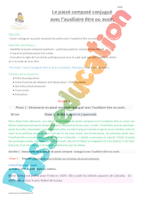 Fiche de préparation : Primaire 5 – Passé composé avec l’auxiliaire être ou avoir pdf