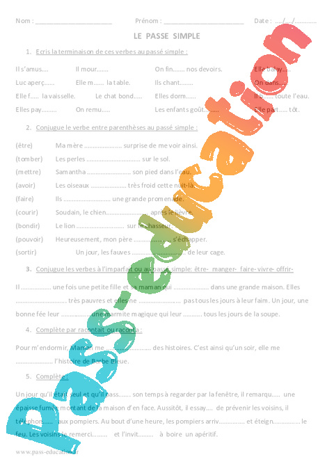 Correction – Passé simpla Primaire 4 – Evaluation – Conjugaison pdf