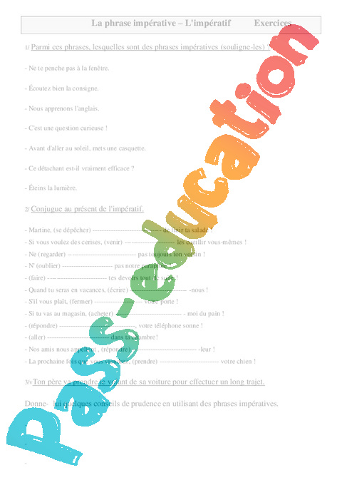 Exercices de grammaire : Primaire 4 : La phrase impérative – L’impératif
